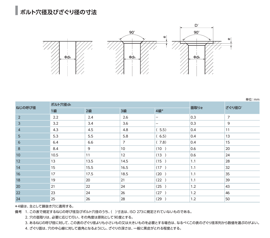引用:https://www.nbk1560.com/~/media/PDF/ja-JP/products/pdf/20_Diameter_of_Clearance_Holes_and_Counterbores_for_Bolts_and_Screws.ashx%3Fla%3Dja-JP