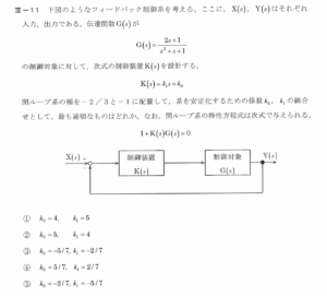 令和2年度技術士第一次試験問題[機械部門] 専門科目Ⅲ-11 フィードバック制御系で極が与えられている時の安定化するための条件