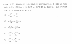令和2年度技術士第一次試験問題[機械部門] 専門科目Ⅲ-22 Euler–Bernoulli 梁の自由曲げ振動方程式