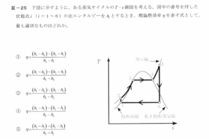 令和2年度技術士第一次試験問題[機械部門] 専門科目Ⅲ-25 ランキンサイクルの理論熱効率